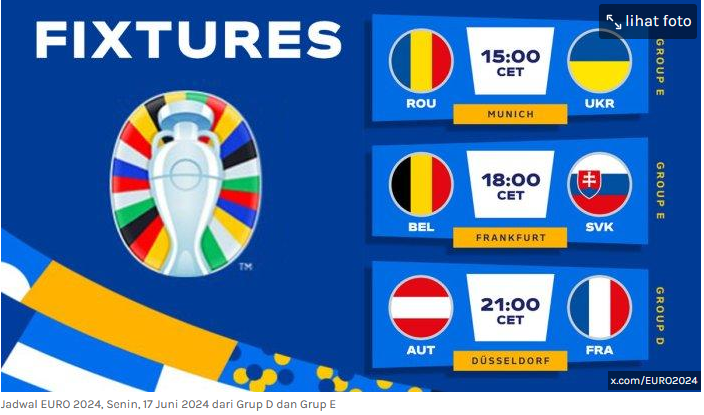 Jadwal Piala Eropa 2024 Senin Malam Ini Belgia vs Slovakia, Austria vs Prancis