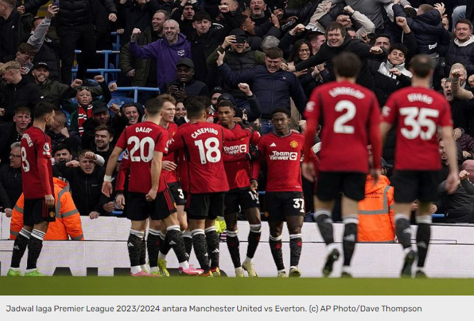 Jadwal laga Premier League 2023/2024 antara Manchester United vs Everton. Duel ini bakal digelar pada Sabtu, 9 Maret 2024, siaran langsung Champions TV dan live streaming